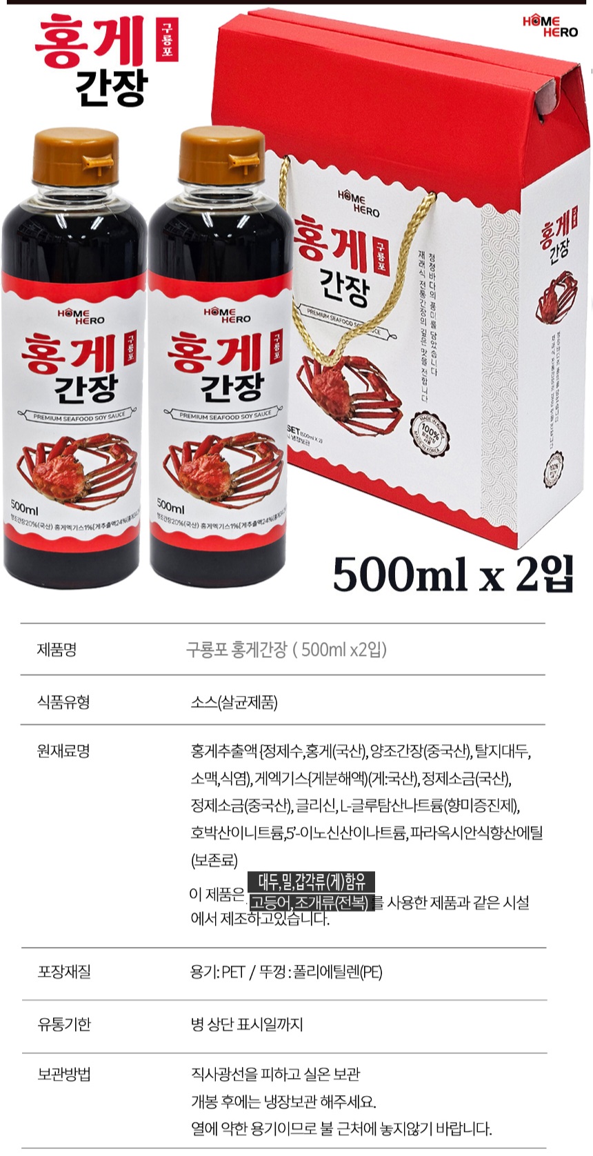 È«°Ô°£Àå 500ml 1p ¿Ü(¸À¼ú ±¼¼Ò½º ÂüÄ¡¾× µî)¼±¹°¼¼Æ®